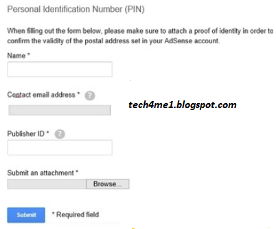 When you set up google AdSense account and get approval for publishing ads on your site or blog by Google AdSense, it starts showing ads on your blog. Once your earning has crossed $10, Google sends Personal Identification Number (PIN) to your Payee Profile address to verify the address of account holder. PINs typically arrive within 2-4 weeks but may take longer depending on your location. Google mail your PIN on a white postcard measuring 4.5 x 6 inch (11.4 x 15.2 cm). PIN is of four digits. You will then need to enter this PIN into your account (the pin Adsense sends). See below screenshot: